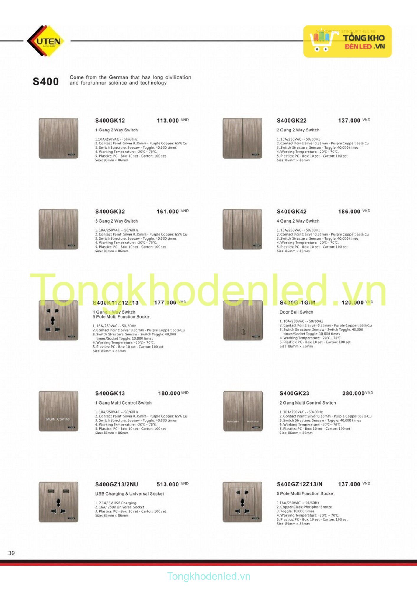 CÔNG TẮC Ổ CẮM UTEN - 039