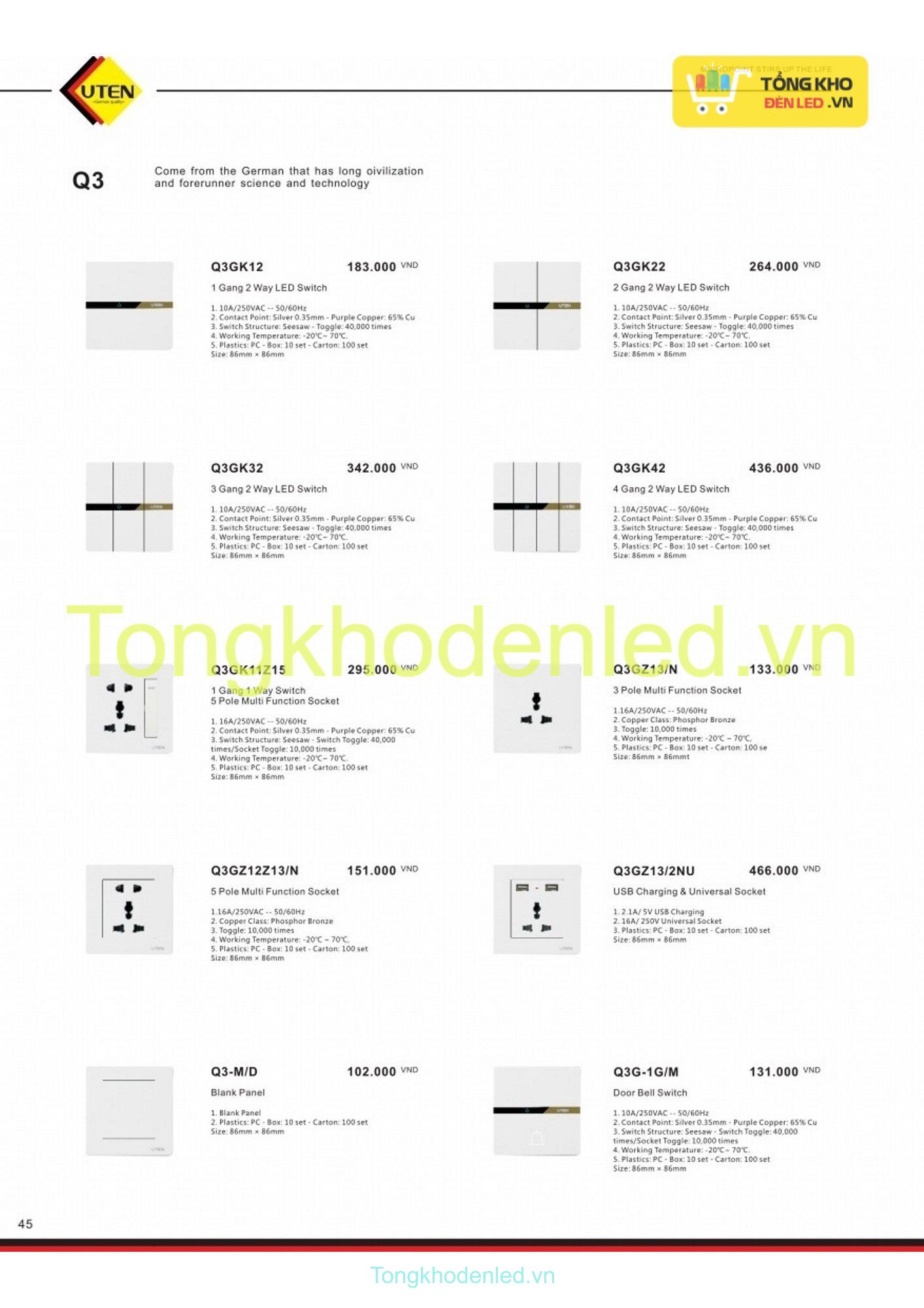 CÔNG TẮC Ổ CẮM UTEN - 045